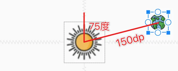 上面说一般情况下一个 View 至少有水平/垂直方向各一个约束,那时在常规的直角坐标系中。约束布局还支持按照极坐标来描述位置,此时需要的是三个属性: