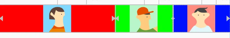 若把链方向上的 View 大小设置为 0 就会填充剩余空间,此时使用 app:layout_constraintHorizontal_weight 可以调节水平权重(垂直方向同理),形成类似 LinearLayout 的效果。比如把三个 ImageView 的宽度都设置为 0dp,权重分别为 2/1/1,效果如下: