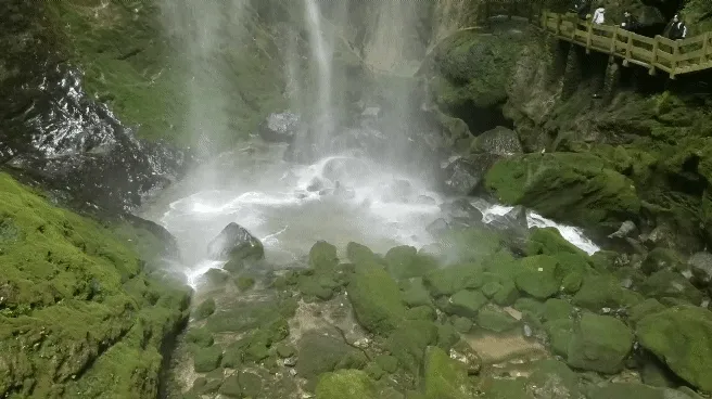 地缝路线比天坑短,可以走慢点(那种路恐怕也走不快)。 里面有个瀑布,即使在冬季也还是挺有流量的。