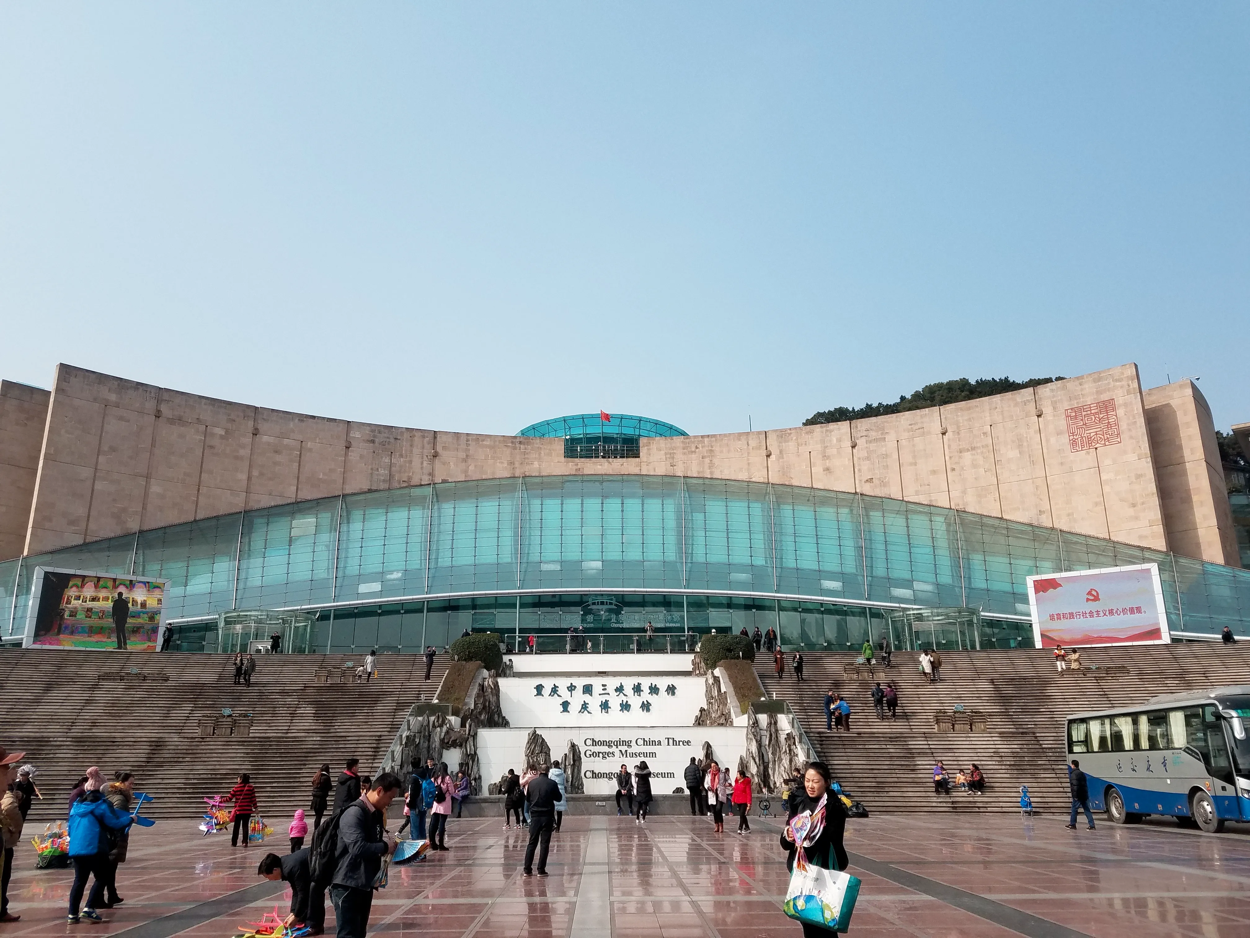感叹完重庆建筑的鬼斧神工后,回到二号线,到三峡博物馆,对面是人民大礼堂。一个免费一个收费。可惜我们那天礼堂因为有会议不开放参观。