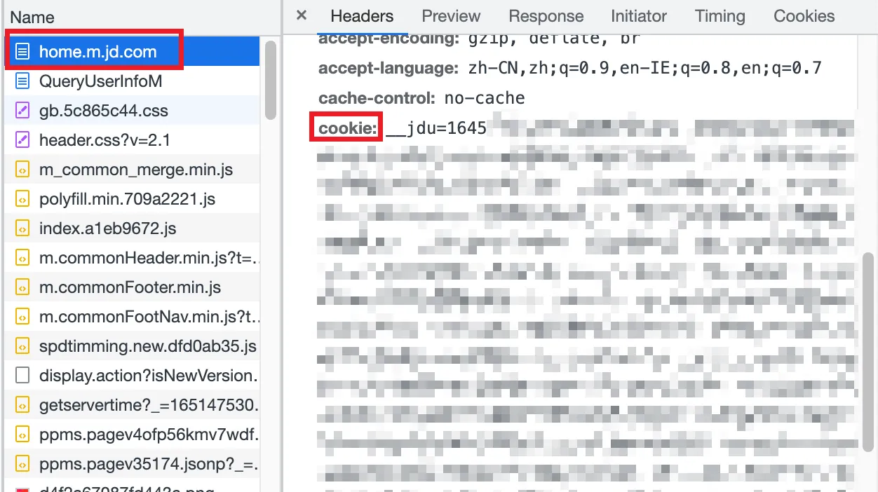 home.m.jd.com,点开它,右侧可以看到 COOKIE,非常多。