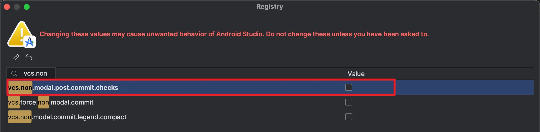 这个改动也在社区引发了极大不满,其中一个帖子给出了解决方案,打开 IDE 的 registry 设置(可以在 help-find action 直接搜索),关闭 vcs.non.modal.post.commit.checks 就行了。