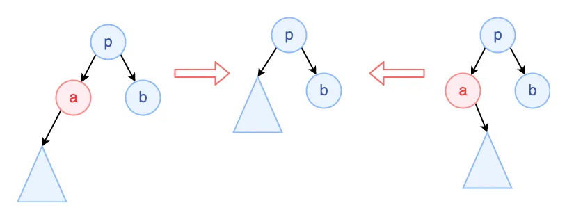 - a 的左子树 < a < m < a 的右子树 < p。因此替换后 m 的左子树均小于 m,右子树均大于 m 且 m自身小于 p。
