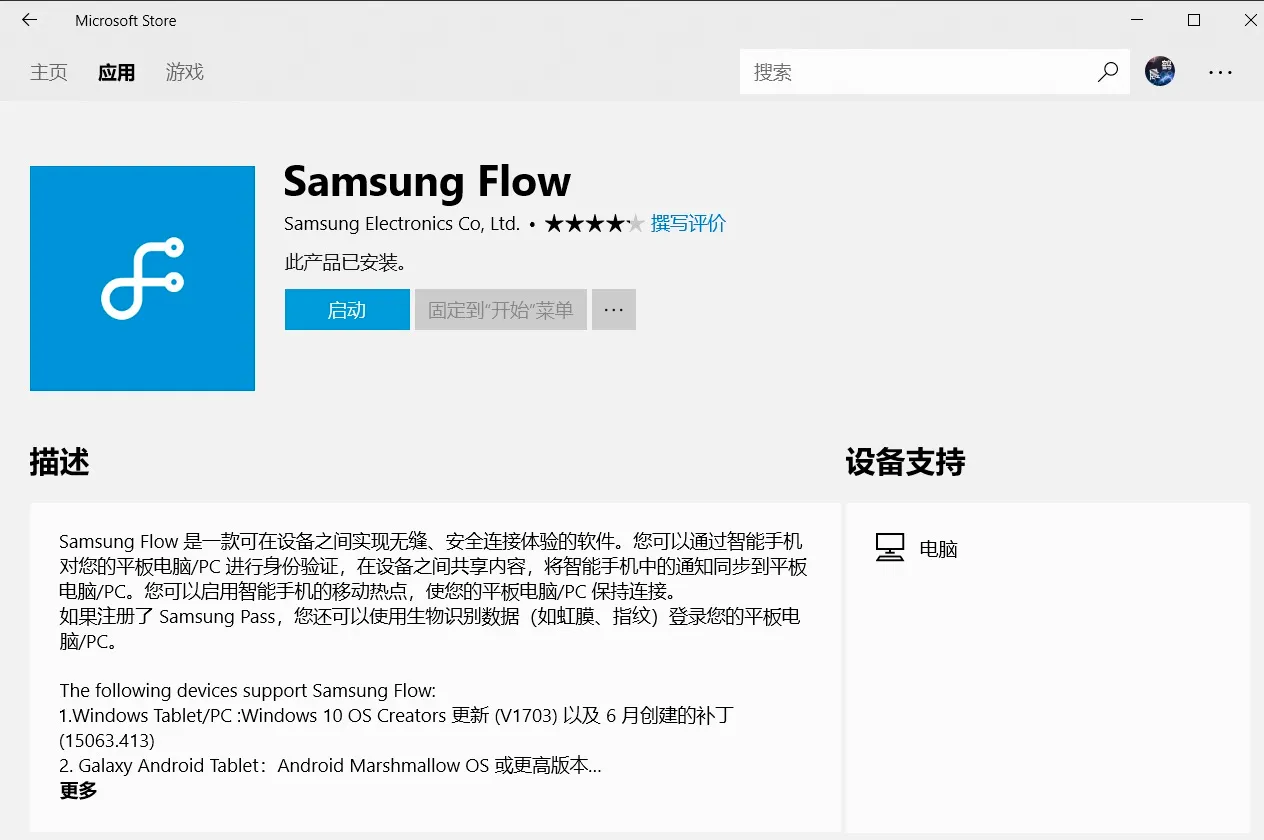 Samsung Flow 是 UWP 程序,需要在 Windows 应用商店下载安装。